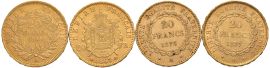 FRANCIA. QUATTRO MONETE D’ORO DA 20 FRANCHI