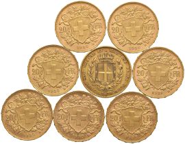 Svizzera 20 Franchi (7); Savoia Carlo Alberto 20 Lire 1842 G