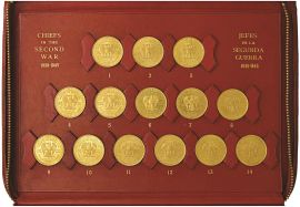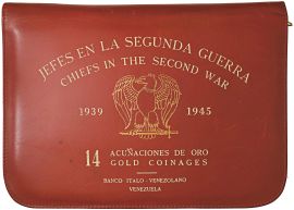 QUATTORDICI MEDAGLIE IN ORO DEI CAPI DELLA SECONDA GUERRA MONDIALE. SERIE EMESSA DAL BANCO ITALO-VENEZUELANO IN ELEGANTE ASTUCCIO DI PELLE
