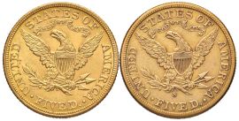 STATI UNITI. DUE MONETE DA 5 DOLLARS 1898 S E 1905