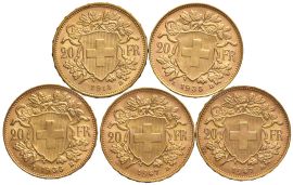 SVIZZERA. CINQUANTA MONETE DA 20 FRANCHI