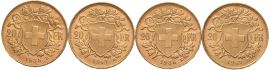 SVIZZERA. QUATTRO MONETE DA 20 FRANCHI