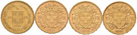 SVIZZERA. QUATTRO MONETE DA 20 FRANCHI