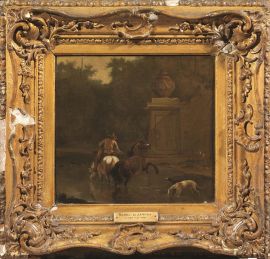 Il dipinto mostra affinità stilistiche e compositive all'interno del catalogo di Karel du Jardin (Amsterdam 11626-Venezia 1678).