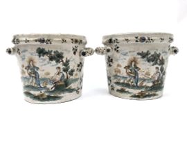 A PAIR OF SMALL MOUSTIER CACHE-POT, 18TH CENTURY