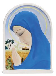 in terracotta modellata a colaggio e dipinta in policromia intitolato "Targa Madonna". Sul retro iscrizione Lenci/MADE IN ITALY/TORINO; cm 25,5x20,8x4,2.