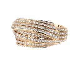 in oro rosa 18kt, impreziosito da diamanti taglio brillante per ct 26 circa, firmato “de Grisogono”, punzoni 750, del fabbricante e numero seriale B104254, diam. interno cm 5,5, gr. 70 circa. Corredato di sacchetto in pelle, scatola e cartellino.