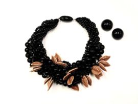 Collana a torciglione con foglie e orecchini mezza boules in abbinamento, in resina sintetica, Angela Caputi Giuggiù