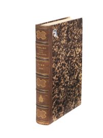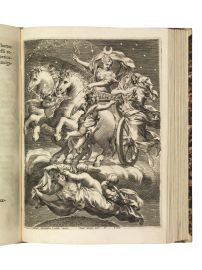 In 4to (234 x 166 mm). Variante B di SBN: Frontespizio calcografico, [x], 522 [i.e. 524], [18] pp. e [1] tavola calcografica extra collazione. Iniziali xilografiche. Carte preliminari ricomposte, ma l’esemplare corrisponde a quello digitalizzato dalla Biblioteca statale di Cremona. In tutto 47 tavole calcografiche disegnate da Pietro da Cortona, Guido Reni, Andrea Sacchi, e incise da Johann Friedrich Greuter e Claude Mellan. Un’incisione sottoscritta “Anna M. Vaiana delin et. pm incid.”. Mezzo vitellino moderno, dorso a nervi finemente decorato in oro. Strappo restaurato a M1 (p. 177) con piccola perdita di testo, assente l’ultima bianca, qualche traccia del tempo, ma per il resto bella copia.