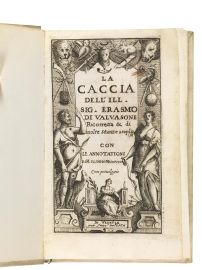 In 12mo (141 x 96 mm). [viii] 134 [2] pp. Vitellino marezzato coevo con tassello dorato al dorso. Piccola bruciatura all’angolo in alto delle pp. 103-134, per il resto buona copia.