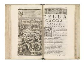 TERZA EDIZIONE di questo poema didattico sulla caccia, illustrata da fini incisioni in rame a soggetto venatorio. Schwerdt II, 278 - Ceresoli 541 - Harting 273.
