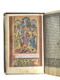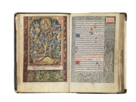 (Religiosi - Libro d’ore - Illustrati 500) Hore diue virginis Marie sec[un]d[u]m verum vsum Roma/num cum aliis multis folio sequenti notatis: characte/ribus suis diligentius impresse Per Thielma[n]nu[m] Keruer. ([Impressu[m] Parisiis] Anno d[omi]ni Millesimo q[ui]nge[n]tesimotertio tertio kale[n]das Augusti Opera Thielma[n]ni keruer). Parigi, Kerver, 1503.