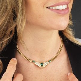ANSUINI COLLANA A MAGLIA GROUMETTE CON SMERALDI E DIAMANTI