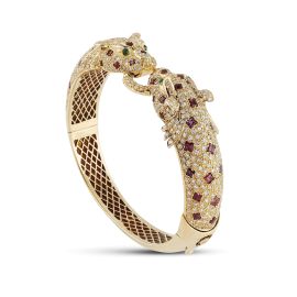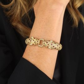 BRACCIALE "PANTERE" RIGIDO CON DIAMANTI E PIETRE DI COLORE