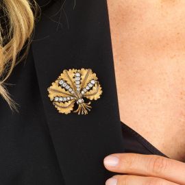 BUCCELLATI SPILLA A FORMA DI FOGLIA CON DIAMANTI