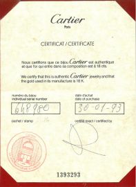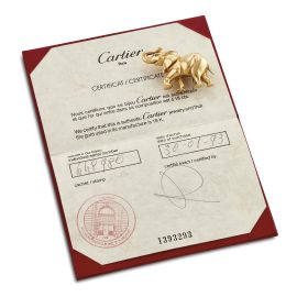 in oro giallo 18kt, firmata "Cartier", punzoni francesi e 750, n. 648980, dim. cm 4x3 circa, gr. 23. Corredato di certificato di garanzia.