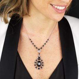 ONYX AND DIAMOND NECKLACE IN 18KT WHITE GOLD
