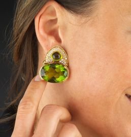 GRANDE PAIO DI ORECCHINI CON DIAMANTI E PASTA VITREA