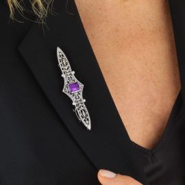 BARRETTE AMETHYST AND DIAMOND BROOCH IN PLATINUM