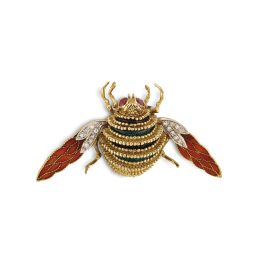 FLY-SHAPED BROOCH IN 18KT TWO TONE GOLD AND ENAMELS