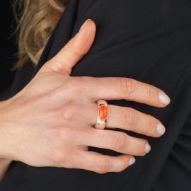CABOCHON CORAL RING IN 18KT RHODIUM-PLATED YELLOW GOLD
