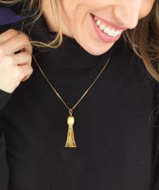 18KT YELLOW GOLD NECKLACE WITH A FRINGED PENDANT