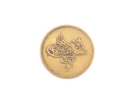 18 KT YELLOW GOLD HEART-SHAPED PADLOCK AND AN ARABIC COIN