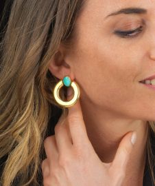CIRCLE PASTE OF TURQUOISE EARRINGS IN 18KT YELLOW GOLD