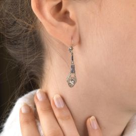 PENDANT SAPPHIRE AND DIAMOND EARRINGS IN 18KT WHITE GOLD