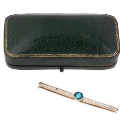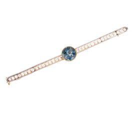 MICROBEAD AND SYNTHETIC STONE BARRETTE BROOCH IN 14KT GOLD