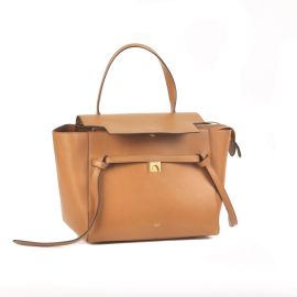 in cuoio naturale resistente sfoderato, con caratteristico doppio nodo frontale a chiusura della pattina con calamita, logo stampato in oro sulla parte frontale in basso, un manico per esser portata a mano, tasca con zip sul retro, piedini in metallo color oro alla base, doppia tasca interna portacellulare. Con dustbag originale.