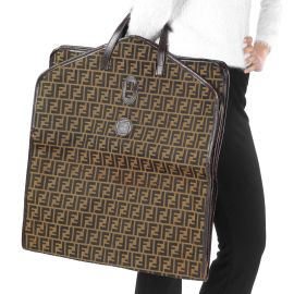 in tela con logo allover marrone, trimming e doppio manico in pelle marrone, tasca interna per biancheria chiusa con zip, lungh. cm 115.