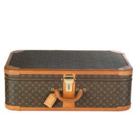 in iconica tela Monogram su base rigida, angoli e bordi in vacchetta, maniglia robusta in pelle, foderata in tela con varie tasche e divisori, oltre a bretelle contenitive, chiusura Trunk con combinazione. Con porte-adresse e lucchetto originali.