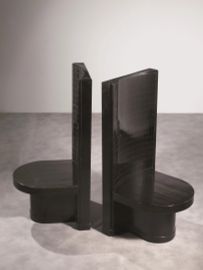 A PAIR OF THRONES, WOOD AND GLASS