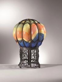 struttura in ferro battuto e paralume in vetro multicolore