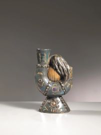 A VASE REPRESENTING MERMAID AND SHELL, ENAMELED CERAMIC