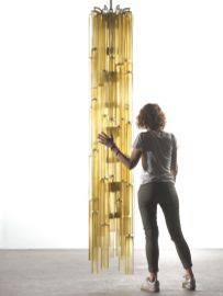 struttura in metallo con pendenti in vetro soffiato nei toni dell’ambra