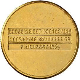 Esemplare emesso al peso di quattro “Sovereign” per pagare il governo dell’Arabia Saudita per i diritti petroliferi. Il contenuto netto dell’oro è di 452 grani, pari cioè a quello di quattro monete britanniche dette “sovrane”. Rappresenta una delle poche emissioni ufficiali coniate dagli Stati Uniti durante l’epoca in cui il possesso dell’oro privato era illegale.