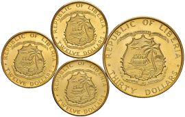 LIBERIA. TRE MONETE DA 12 DOLLARI E UNA DA 30 DOLLARI 1965