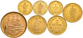 SAN MARINO. SETTE MONETE 1974-1975 (SCUDO, 2 SCUDI, 5 SCUDI) CON RELATIVI COFANETTI