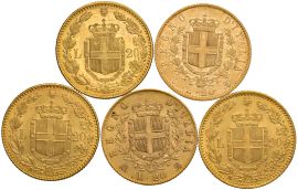 SAVOIA. CINQUE MONETE DA 20 LIRE