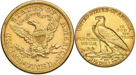 STATI UNITI. DUE MONETE DA 5 DOLLARI 1885 E 2 ½ DOLLARI 1914