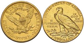 STATI UNITI. DUE MONETE DA 5 DOLLARI (1905 LIBERTY, 1911 INDIANO) E UNA DA 1 DOLLARO 1853