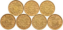 SVIZZERA. SETTE MONETE DA 20 FRANCHI