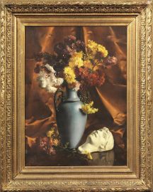 STILL LIFE WITH VASE OF FLOWERS AND MASK