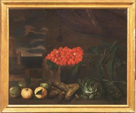 STILL LIFE WITH FISHES, FRUITS, VEGETABLES AND CHERRIES
