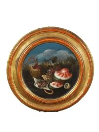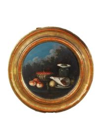 oil on round panel, diam. cm 39,5 approx. (in frame), diam. cm 25,5 approx., a pair