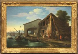 COAST LANDSCAPE WITH A FARMHOUSE AND FISHERMEN