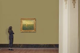 Formatosi nel clima della pittura lombarda, Giorgio Belloni si affermò ben presto nella rappresentazione del paesaggio ispirandosi inizialmente alla campagna intorno a Codogno, suo paese natìo. Attento alle opere di Lorenzo Delleani, Eugenio Gignous e Guglielmo Ciardi, ne rielaborò gli stimoli in una pittura più aderente alla realtà, in cui si concentrò sulla ricerca di toni e di accordi di colore. Protagonista della sua produzione è la natura, rappresentata con una sensibilità legata al gusto dell'ultimo Ottocento romantico, di cui la Marina che presentiamo in catalogo, influenzata dalla pittura dei maestri veneti del XIX secolo, è un significativo esempio.