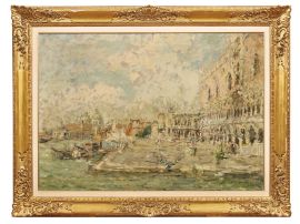 La sua produzione di vedute cittadine e di paesaggi si contraddistingue per una pennellata franta e per l'adozione di una gamma cromatica chiara e trasparente, che diventerà la sua cifra caratteristica. Nella seconda metà degli anni Quaranta, in coincidenza con la ripresa dell'attività espositiva, dopo la lunga sospensione dovuta al secondo conflitto mondiale, durante il quale Luigi Mantovani continua a dipingere nella soffitta della sua abitazione in Milano - grazie al suo mecenate Guido Snider, titolare di una ditta di macchine da caffè espresso - rinnova il suo stile con una tecnica pittorica più fluida e sciolta e riprende il suo repertorio di vedute milanesi e veneziane, tra cui si annovera anche la bella Veduta di Palazzo Ducale che presentiamo in catalogo.